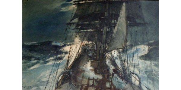 Frank Mason published a group of such prints through the Sporting Gallery, during the 1930s - these were issued with titles such as "Landfall" and "When Eight Bells Toll" - see above and above left.